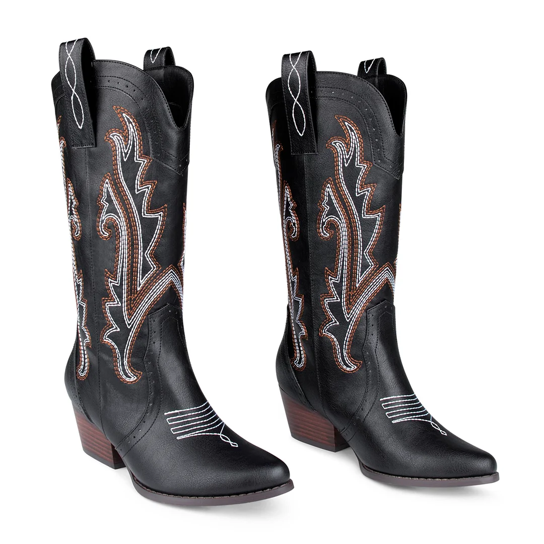 • RETRO-WESTERN STYLE: MERUTOME Cowgirl Boots with classic western embroidery on the body and foot. Double pull tabs make it easy to put on and take off.
